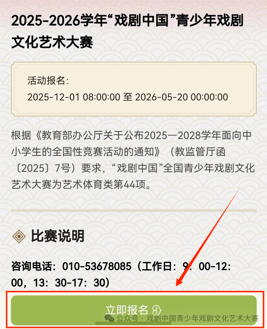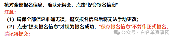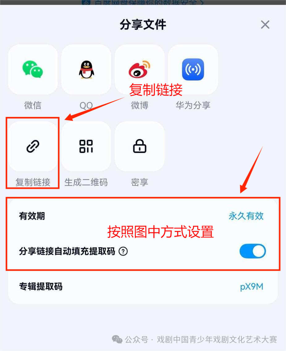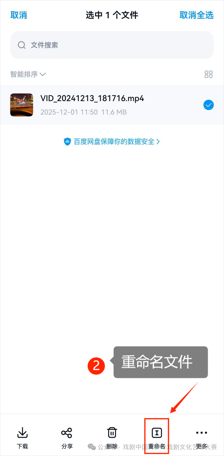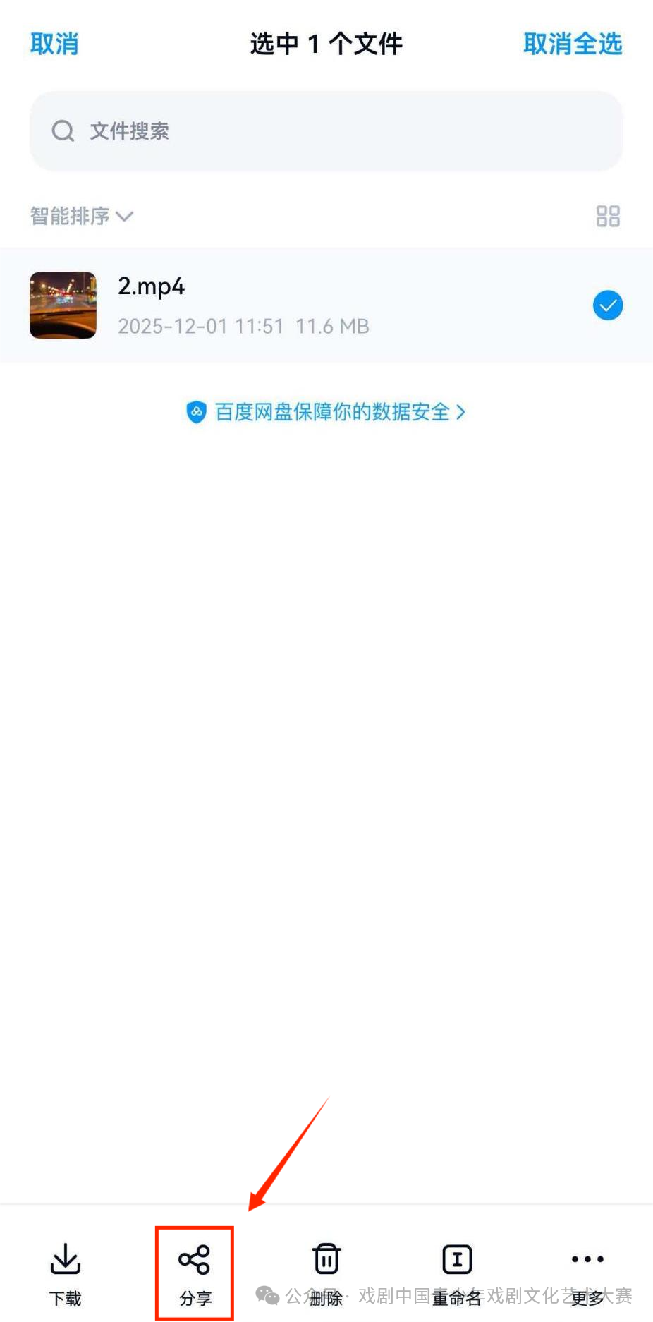 个人报名仅针对单个作品报名使用 每人每赛项仅限报名一个作品 01 选择“参赛报名” 02 首次登录,选择“立即登录”,并授权获取手机号 03 进入报名界面,选择底部“立即报名” 04 进入报名界面,选择“报名地区” 注意: 报名地区为参赛选手所在赛区,请谨慎选择,一经确认,无法修改。 05 选择“添加作品+”,填写报名信息 06 填写参赛作品信息 07 08 点击“保存报名信息”,获取“作品文件名称”,按提示,将作品视频文件重命名为指定名称 09 10 分享作品视频文件,复制分享链接 注意: 分享链接有效期设置“永久有效”,打开“分享链接自动填充提取码” 11 将作品分享链接,粘贴至报名小程序 注意: 粘贴时,正确选择粘贴区域,按照报名作品赛项粘贴 12